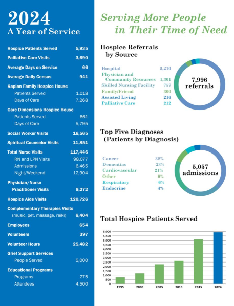 Care Dimensions serves people of all ages, races, faiths, gender identity, sexual orientation, ethnic backgrounds and socio-economic standing and is committed to helping more individuals and families access care and receive support during one of the most challenging times in their lives.